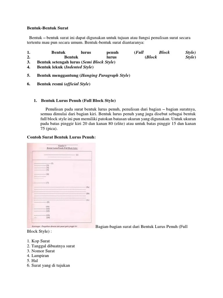 Perbedaan bentuk surat block style dengan semi block style adalah pada awal paragraf yang menjorok 5 karakter ke dalam, kemudian tanda tangan berada di sebelah kanan surat (lihat gambar terlampir) korespondensi adalah penyampaian pesan melalui surat dari satu pihak kepada pihak lain. Namun dalam ilmu administrasi perkantoran, maka contoh surat block style masih tetap dipelajari. 07.04.2019 · surat full block style adalah surat berbentuk lurus penuh yang format penulisannya menggunakan rata kanan kiri. Surat yang juga disebut sebagai surat bentuk lurus ini merupakan kombinasi dari bentuk surat full block style dan semi block style. Tata cara membuat surat yang baik. Bentuk surat yang paling umum digunakan salah satunya adalah bentuk full block style atau bisa juga disebut bentuk lurus penuh. 09.09.2019 · surat bentuk lurus penuh full block style portal ilmu com 12 contoh surat dinas sekolah perusahaan kesehatan dan seri penyuluhan 2 surat menyurat dalam bahasa indonesia tif bentuk2 surat contoh surat resmi undangan dinas … 21.08.2019 · contoh surat semi block style. Ukuran batas pinggir kiri 20 dan kanan 80 (elite) atau batas pinggir 15 dan kanan 75 (pica) Sebab, cara penulisannya sangat khas dan terlihat. 18.10.2019 · perbedaan full block style block style dan semi block style. Sehingga membentuk sebuah surat yang paragrafnya seperti balok yang full dari kiri ke kanan. Agar lebih jelas, bisa dilihat dalam.